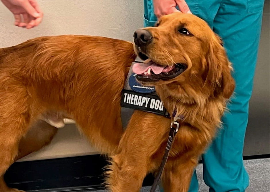 Mabel (aka Mabel the Wonder Dog) is a kind and gentle Golden Retriever. Mabel’s birthday is unknown but she was adopted around a year old on February 3, 2023. She is the picture of resilience and paws-itivity. She got a ruff start in life, but is now all settled into the role she was meant to play- a therapy dog who loves everyone she meets. Mabel has lots of calm energy and a bottomless craving for being petted and hugged. She also really just loves the simple things, like laying outside on a sunny day. Mabel’s handler is Ryan.