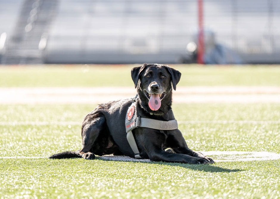 Bailey is a Labrador Retriever. She was born on February 18, 2018. Bailey loves any and all food. Her favorites are pup cups, fruit, sweet potatoes and peanut butter. She loves to swim, hike and go on runs. She had knee surgery from a partially torn CCL and went through OSU's Veterinary Sports Medicine & Physical Rehabilitation program and now she can sprint and play like a puppy again. She is the middle "child" to her two dog siblings, Ruger, an Australian Shepherd, and Hazy Jane, a Lab. Mom is her favorite. Bailey’s handler is Heather.