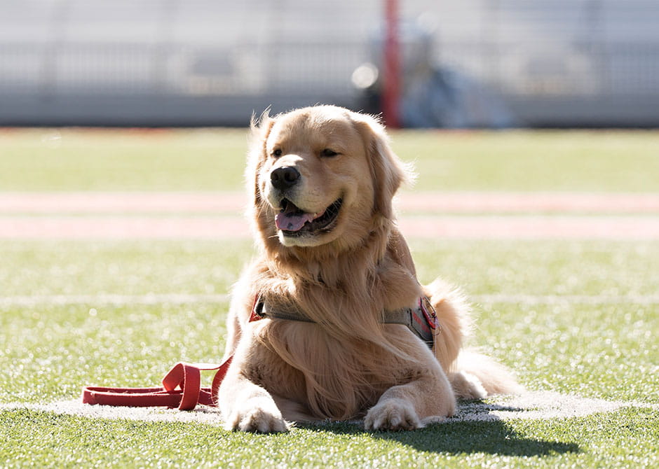 Bo is a Golden Retriever. He was born on July 5, 2018. He enjoys rolling around in the grass, zoomies, and his bedtime treats. When gets very excited, he sings! Bo’s handler is Daphne.