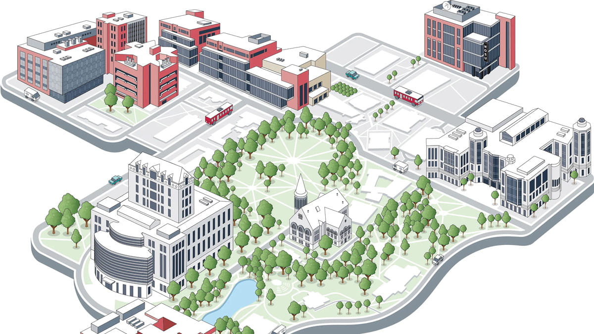 Take a look at The James Outpatient Care, the Pelotonia Research Center, the hospital tower and more in this illustrated map featuring the medical center’s new facilities.