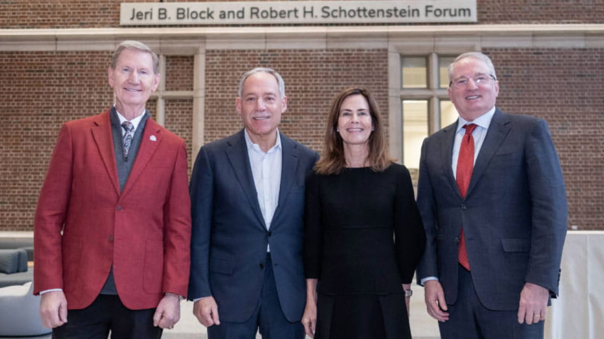 Jeri Block and Bobby Schottenstein are among the “forever Buckeyes” who have supported the Interdisciplinary Health Sciences Center at Hamilton Hall.
